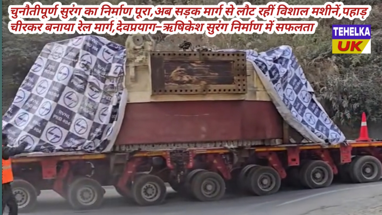 चुनौतीपूर्ण सुरंग का निर्माण पूरा,अब सड़क मार्ग से लौट रहीं विशाल मशीनें,पहाड़ चीरकर बनाया रेल मार्ग, देवप्रयाग–ऋषिकेश सुरंग निर्माण में सफलता।