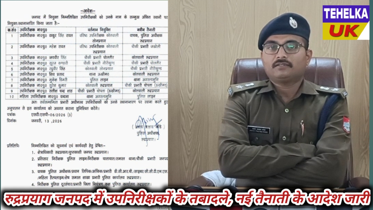 रुद्रप्रयाग पुलिस में प्रशासनिक फेरबदल,निरीक्षक व अपर उपनिरीक्षकों की तैनाती बदली, व्यवस्था को धार देने की कोशिश।