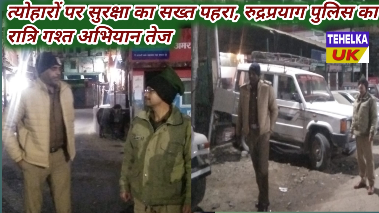 त्योहारों पर सुरक्षा का सख्त पहरा, रुद्रप्रयाग पुलिस का रात्रि गश्त अभियान तेजसंदिग्ध गतिविधियों पर नजर, हुड़दंगियों पर होगी कड़ी कार्रवाई।