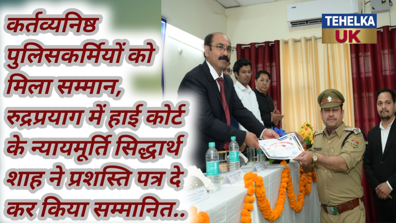 कर्तव्यनिष्ठ पुलिसकर्मियों को मिला सम्मान, रुद्रप्रयाग में हाई कोर्ट के न्यायमूर्ति सिद्धार्थ शाह ने प्रशस्ति पत्र दे कर किया सम्मानित..