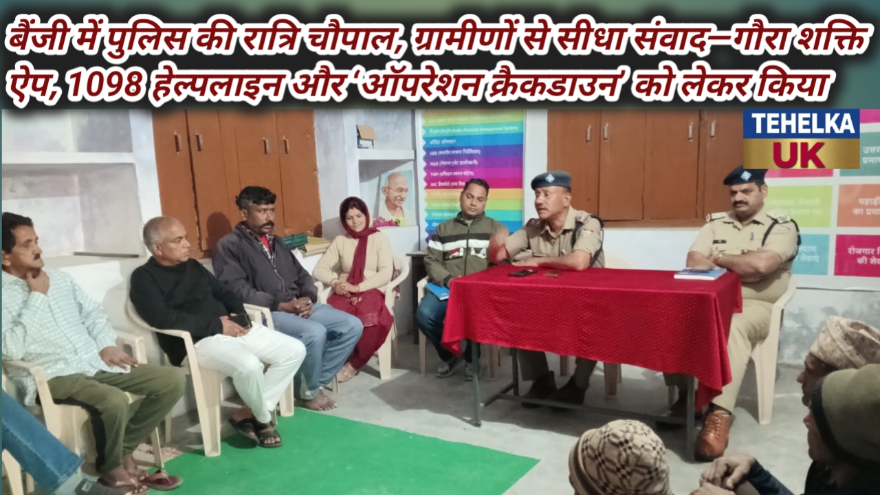 बैंजी में पुलिस की रात्रि चौपाल, ग्रामीणों से सीधा संवाद—गौरा शक्ति ऐप, 1098 हेल्पलाइन और ‘ऑपरेशन क्रैकडाउन’ को लेकर किया.