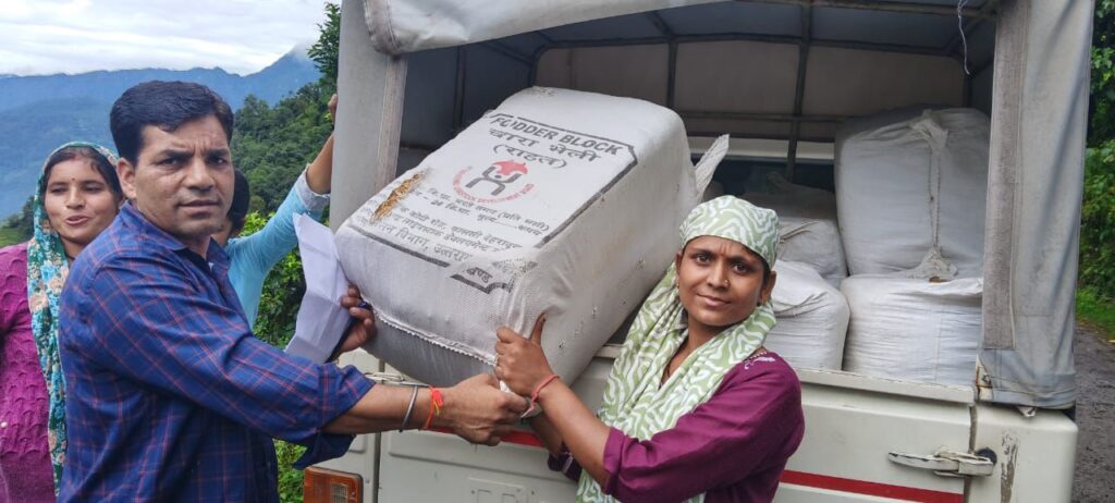 पशुपालन विभाग द्वारा चारा वितरण एवं पशुओं का स्वास्थ्य परीक्षण किया गया।