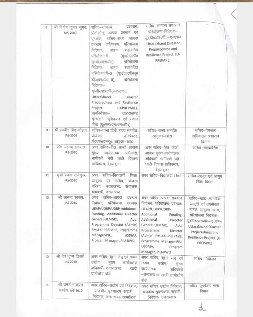 डॉ. अहमद इकबाल (IAS-2010) को अपर सचिव-वित्त, ऊर्जा, आवास तथा मुख्य कार्यकारी अधिकारी भागीरथी नदी घाटी विकास प्राधिकरण बनाया गया है।